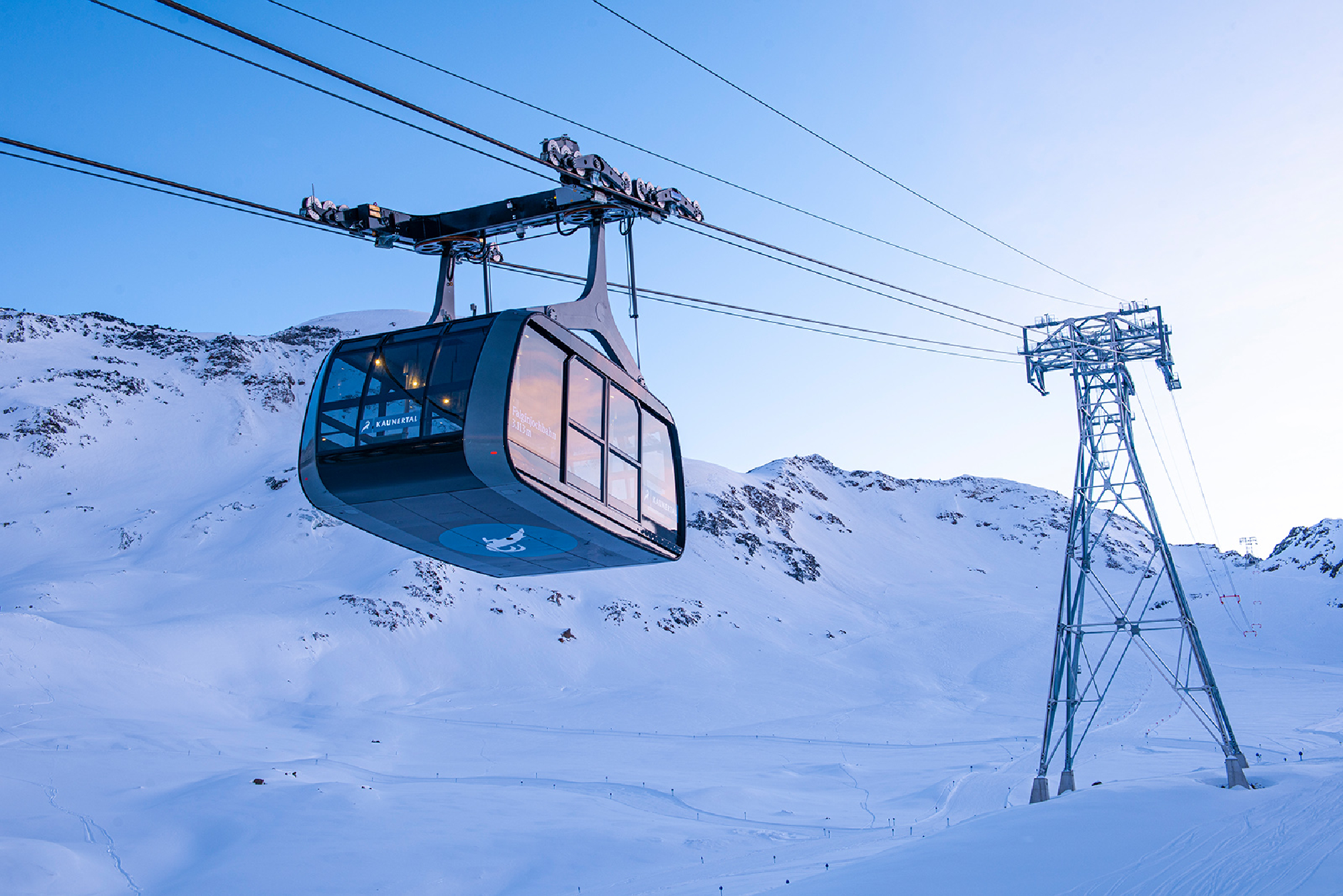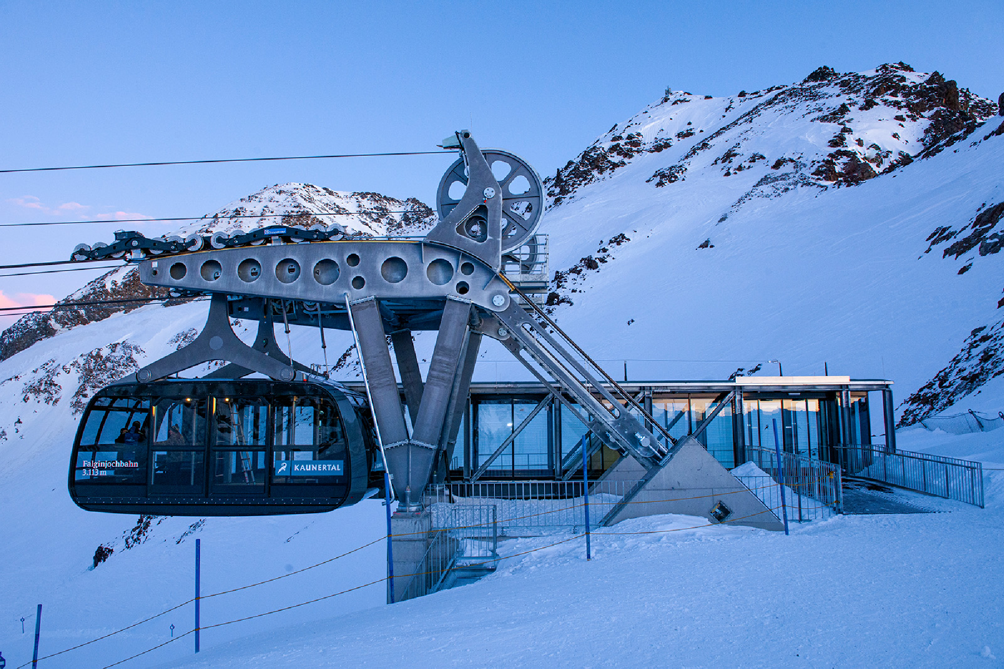 Seit Dezember 2019 ist mit der „Falginjochbahn 3.113 m“ eine österreichweit einzigartige Gondelbahn am Kaunertaler Gletscher in Betrieb. Die Talstation befindet sich auf ca. 2.750 m, die Bergstation auf 3.113 m am Falginjoch, dem höchsten Punkt des Skigebietes – für die Strecke benötigt die Gondelbahn nur etwas über drei Minuten. Der Kaunertaler Gletscher ist seit Eröffnung der Falginjochbahn zu 100 Prozent barrierefrei: Alle Liftanlagen sind ebenerdig zugänglich, zudem gibt es einen eigenen Zugang für Monoskifahrer im Stationsgebäude.