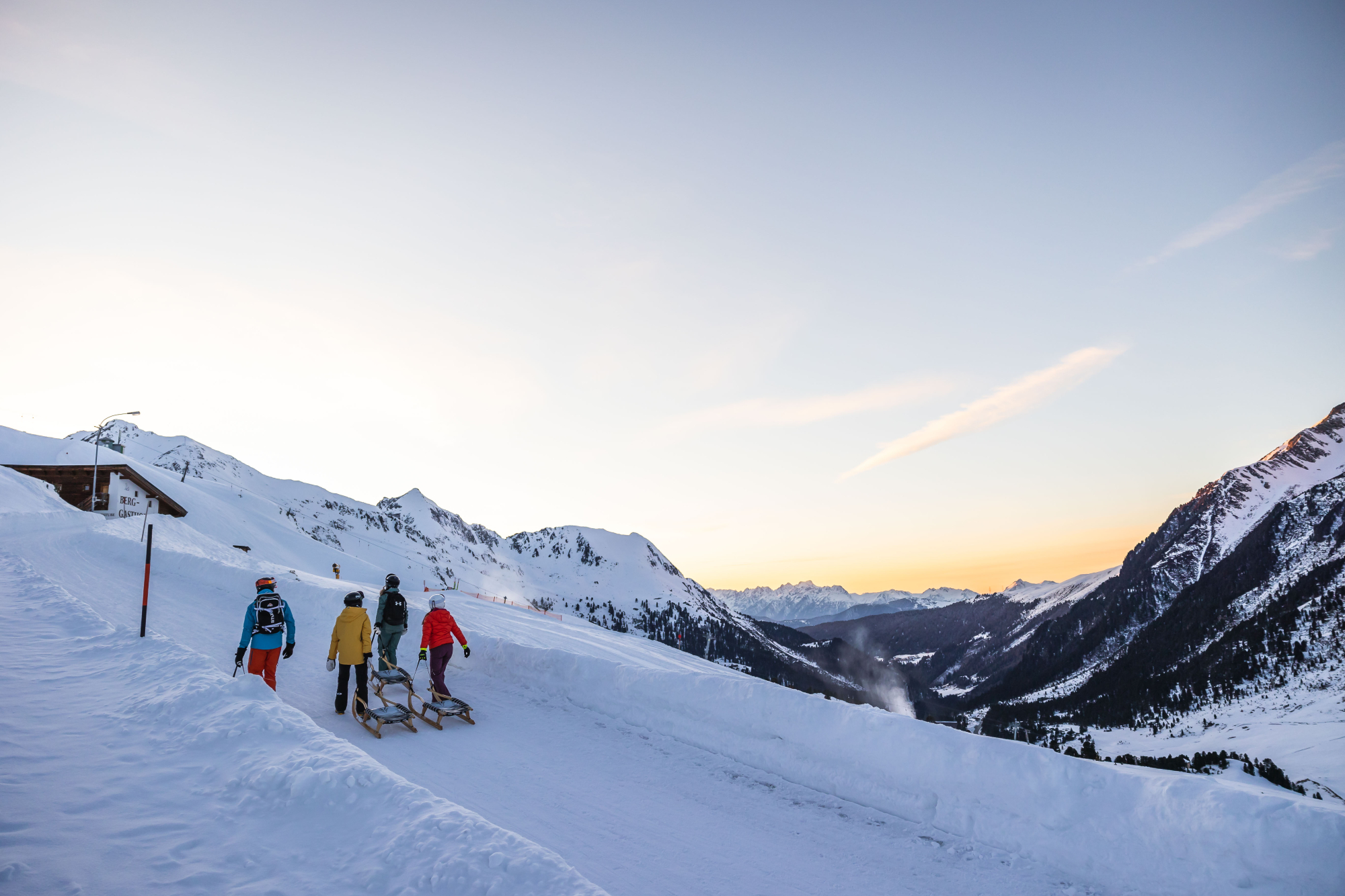 In Kühtai befindet sich die höchstgelegene Rodelbahn Tirols auf über 2.000 Metern Seehöhe. Insgesamt geht es 1,4 Kilometer lang bis ins Tal mit 14 Kehren. Um sich ins Rodelvergnügen zu stürzen, startet man am Parkplatz an der Talstation der Drei-Seen-Bahn in Kühtai. Von dort aus geht es 45 Minuten den Berg hoch bis zum Graf-Ferndinand-Haus. Nach einer Stärkung geht es dann auf den Schlittenkufen die Abfahrt hinab. Ein besonderes Highlight ist die Rodelbahn auch bei Nacht, denn bis 22:30 ist sie beleuchtet.