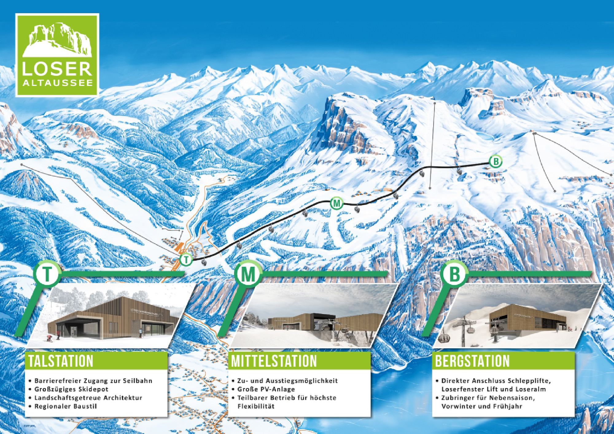 Die neue Gondelbahn soll den bestehenden 6er-Sessellift Loser-Jet und den Doppelsessellift ersetzen. Dafür wird sie von der Talstation des Sessellifts im Ort über eine Mittelstation bis zum Parkplatz der Bergstation führen. Die neue Talstation soll im regionalen Baustil errichtet werden und zusätzlich ein großes Skidepot enthalten.