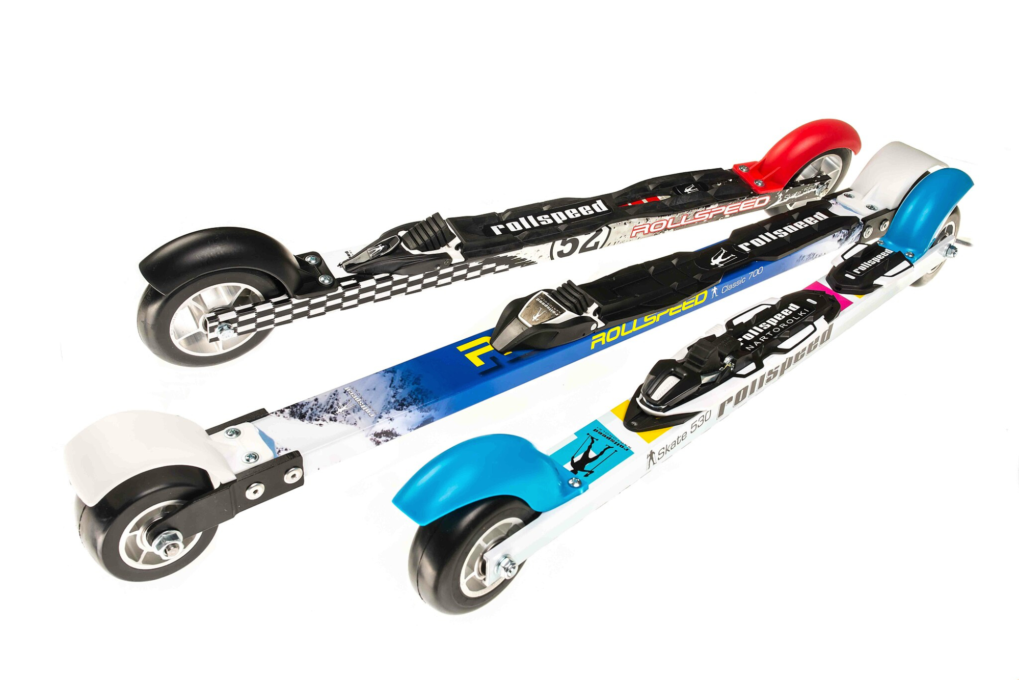 Rollskier bestehen aus einem langen Holm und zwei bis vier Rädern, die am vorderen und hinteren Ende des Rahmens befestigt sind. Der Achsenabstand zwischen den Rädern beträgt normalerweise zwischen 53 und 61 Zentimetern bei Rollskiern für die Skating-Technik und 70 Zentimetern für die klassische Technik.