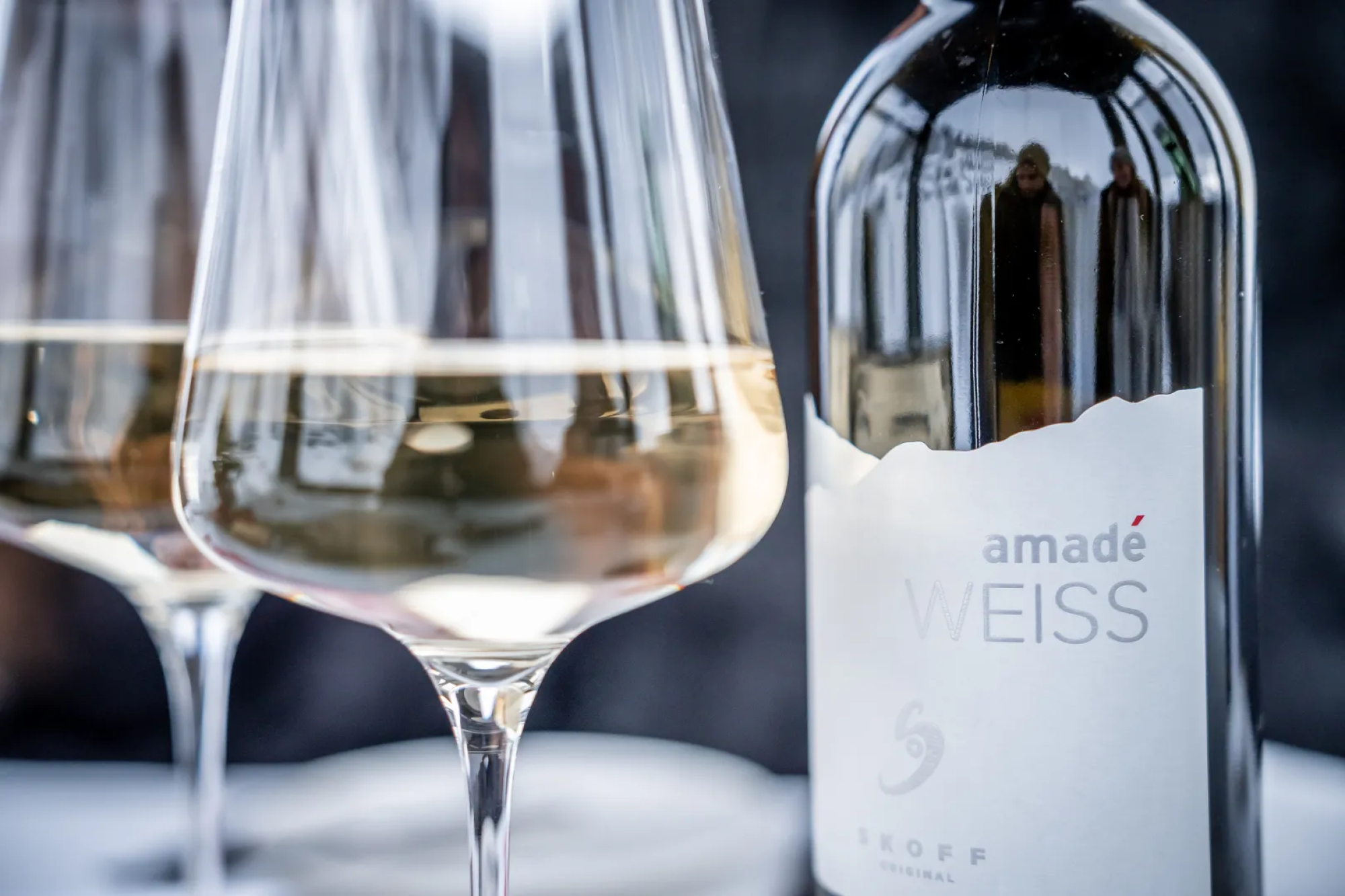 Dazu gibt es die edlen Ski amadé-Weine vom Weingut Alphart - Traiskirchen (Chardonnay vom Berg) und vom Weingut Johannes-hof Reinisch in Niederösterreich (Zweigelt Reserve 2021).