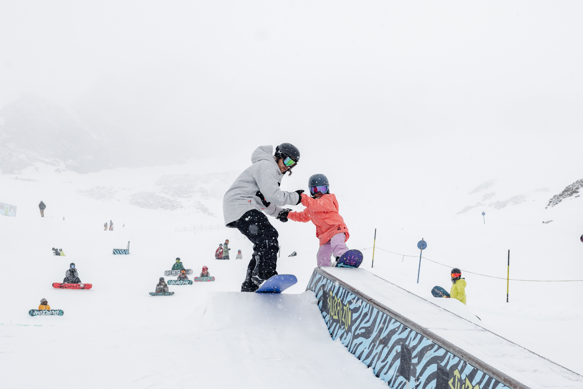 Sei es Einsteiger, Amateur oder Pro – alles mischt und trifft sich unter der Frühlingssonne am Gaiskarferner zwischen Pro-, Medium- und Easy-Line. Die Pro-Line mit zwei Kickern und Jib-Obstacles in einer Line lässt sowohl Snowboard- als auch Ski-Freestyle-Herzen höherschlagen. Ein weiteres Highlight ist die Jib-Line – ein seit dem Vorjahr neuer Bereich mit Rails und coolen Jib-Features. Das alles ist einfach zu erreichen dank des eigenen Zoo-Shuttles, der die Wintersportler:innen direkt zum Spielplatz ihrer Shred-Träume bringt.