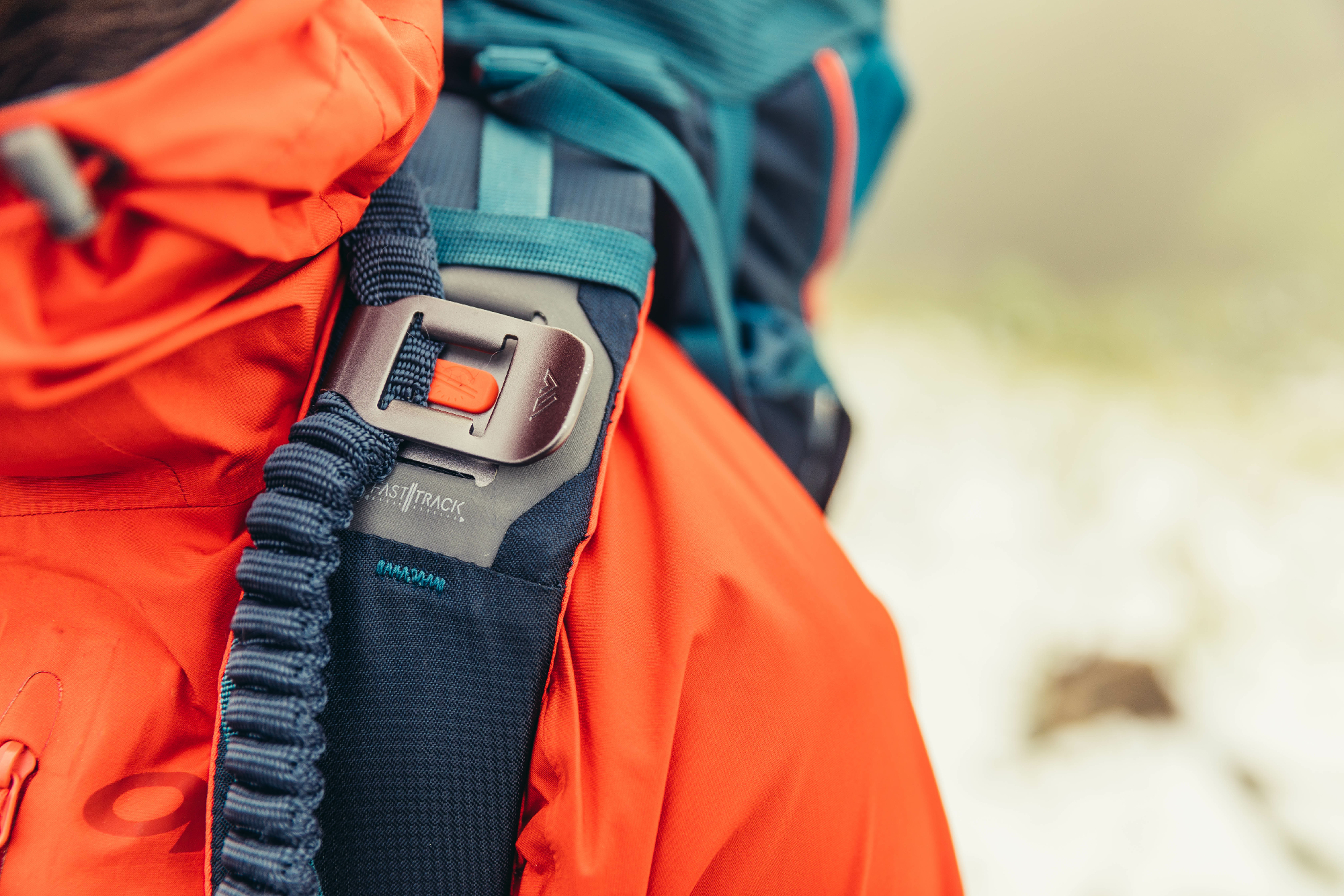 Die letzten Meter zum Gipfel noch kurz zu Fuß mit Ski oder Splitboard am Rucksack zurücklegen? Mit dem Targhee FT von Gregory kein Problem. Der Clou ist das ebenso durchdachte wie raffinierte Ski- bzw. Splitboard-Tragesystem namens FastTrack. Es besteht aus einer PU-beschichteten Schlaufe oberhalb des Hüftgurts (die bei Nichtbenutzung einfach verstaut werden kann), einem elastischen, verstärkten Gurtband sowie einer robusten Aluminium-Schnalle am Schultergurt. Damit werden die Bretter einfach und schnell am Pack befestigt, ohne den Rucksack absetzen zu müssen. Ski oder Splitboard ins Hüftholster schieben, mit dem elastischen Band einfach einwicklen, über die Schulter ziehen, Band sicher am Rucksack fixieren – fertig und los geht's!