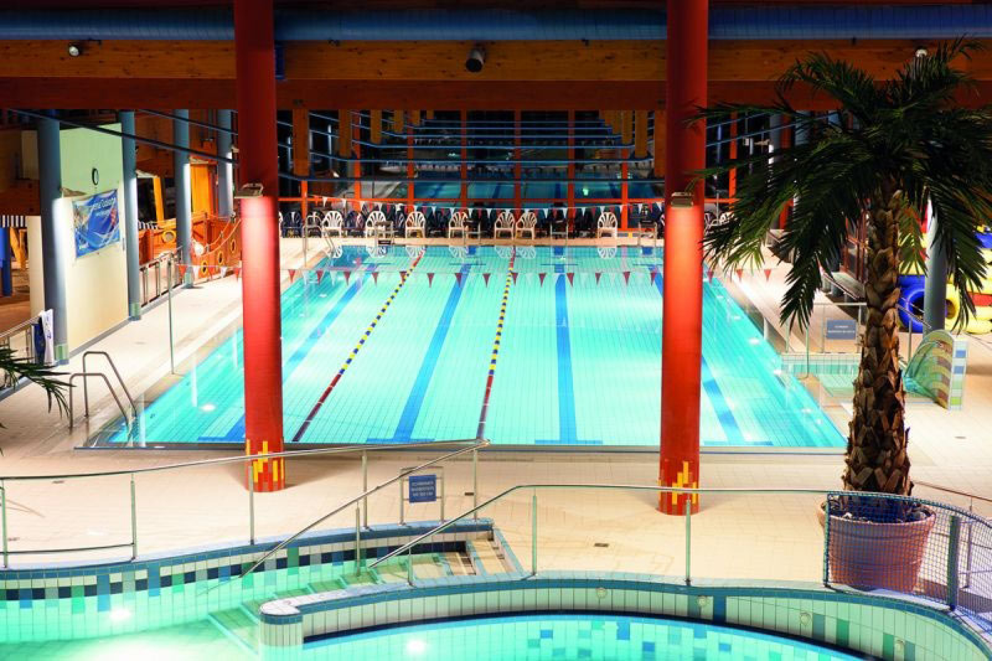 Während die Kinder im Erlebnisbad in Sonthofen in der Kinderwelt "Wonniland" auf Entdeckungsreise gehen oder sich im Rutschenturm in der Black Hole, dem Crazy River oder der Kamikazerutsche austoben, können die Eltern im Palmengarten abschalten oder es sich in der Saunawelt gut gehen lassen. Von verschiedenen Aufgüssen bis hin zum Steinbad lädt das Wohlfühlangebot zum Entspannen ein. Das Bad in Wonnemar verfügt darüber hinaus über einen Spa-Bereich mit Anwendungen wie Massagen, Peelings und Packungen.