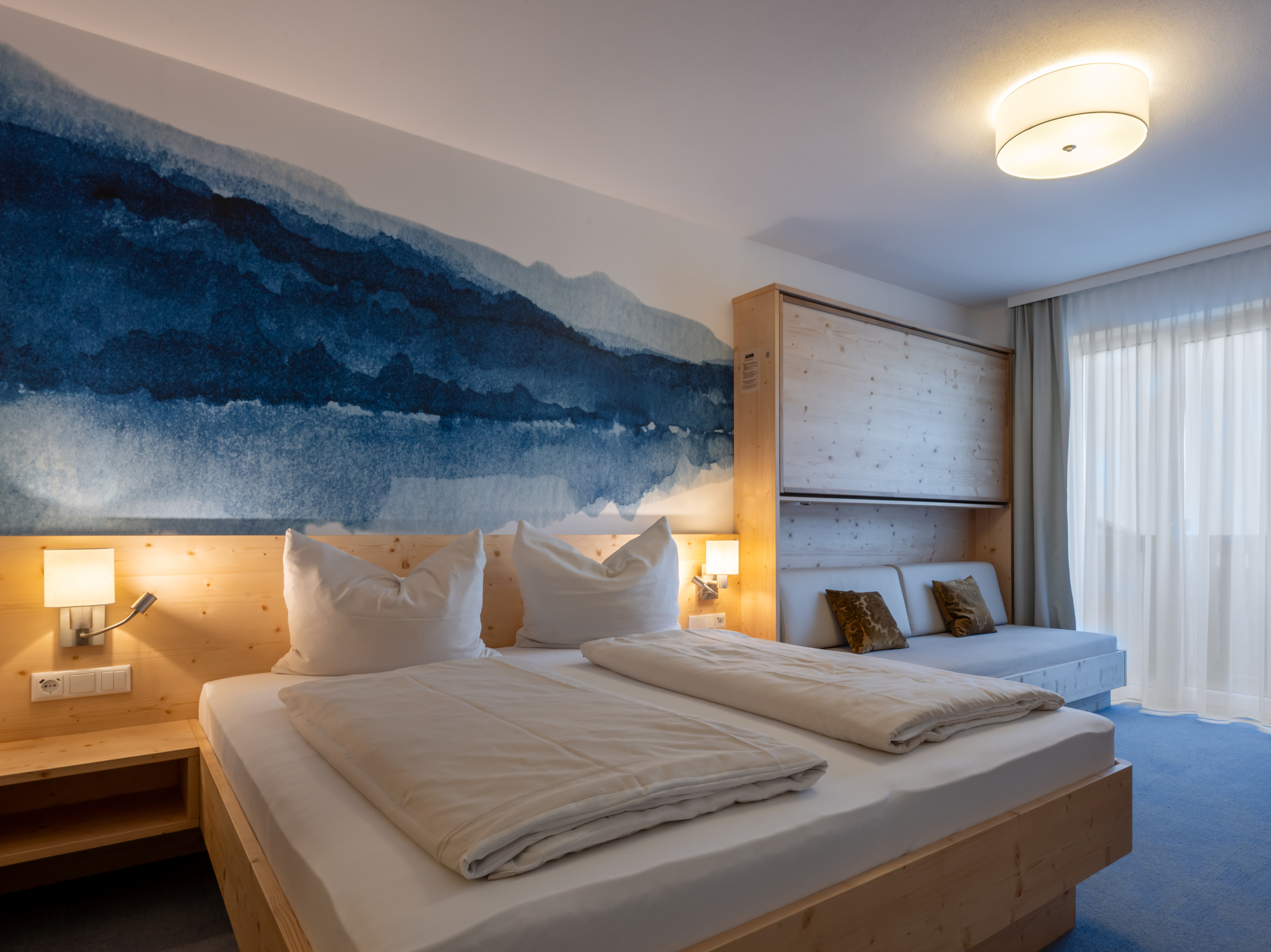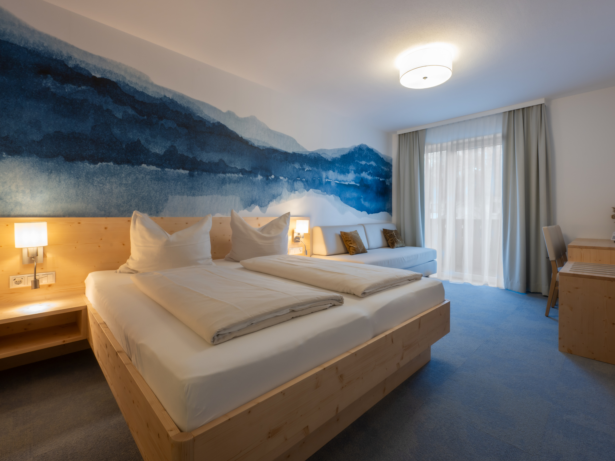 Die gemütlichen Doppelzimmer und großzügigen Familienzimmer sind geschmackvoll und modern ausgestattet, über einen Lift erreichbar und verfügen über Dusche/WC, Kabel-TV und Balkon mit Bergblick. Zudem gibt es W-Lan in den Zimmern und alles sind Nichtraucherzimmer. Die Gastgeber sind stolz auf die bekannt gute Küche, die vom Chef selbst geleitet wird. Hier wird großen Wert auf regionale und saisonale Produkte gelegt. Die Hausgäste bekommen am Morgen ein reichhaltiges Frühstücksbuffet, das keine Wünsche offen lässt, am Nachmittag eine Skifahrer-Jause mit Gulaschsuppe und Wurstsalat und abends ein 3-Gang-Menü mit Salatbuffet und Hauptgang zur Wahl (mit einer vegetartischen Variante), wo für jeden das Richtige dabei ist. Reisegruppen sind ebenfalls herzlich willkommen.