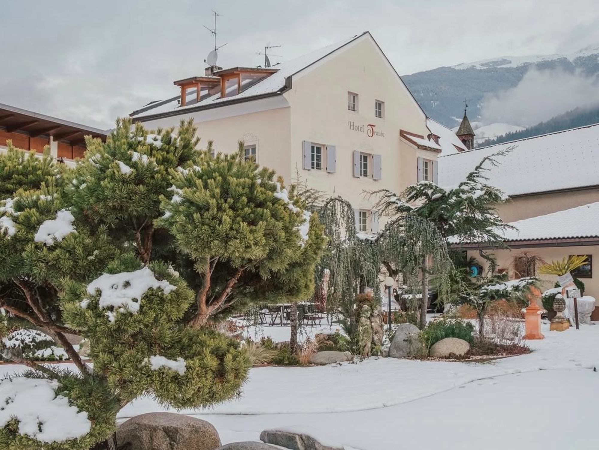 Schon lange steht es da im Zentrum der Bischofsstadt Brixen, unser Hotel Traube, und hätte gewiss so manch spannende Geschichte aus längst vergangenen Tagen zu erzählen. Hinter dem historischen Gemäuer genießen Sie die herrliche Ruhe im gepflegten Garten, auf der Sonnenterrasse oder in den modern eingerichteten Zimmern und Suiten. Für entspannte Momente sorgt zudem unser Pool im Außenbereich, während unsere Bar der ideale Ort ist, um den Tag in stilvoller Atmosphäre ausklingen zu lassen. Und wenn Ihnen nach dem pulsierenden Leben außerhalb des alten Gemäuers sein sollte, so genügt ein Schritt vor die Tür. Schließlich hält die quirlige Kleinstadt ganz schön viel für Kulturliebhaber, Shopping-Fans oder Genussmenschen bereit.