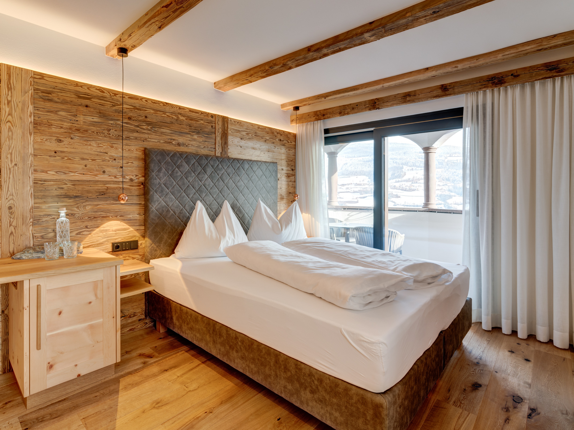 Zum Wohlfühlen laden geräumige und neuwertige Komfortzimmer mit Dusche/WC, Föhn, Sat-TV, Telefon, Safe, teilweise Kühlschrank und kostenlosem WIFI ein. Einen atemberaubenden Ausblick über das Tal und die Dolomiten bietet Ihnen ein Balkon, über den alle Zimmer verfügen. Ein besonderes Erlebnis bieten Ihnen zwei Zimmer mit Rundbettoasen. Weiters stehen den Gästen zwei geräumige Ferienwohnungen für bis zu 8 Personen zur Verfügung. Damit es Ihnen an nichts fehlt sind diese mit 1-2 Schlafzimmern mit Schlafsofa, 1 Badezimmer und 1 Wohnbereich mit Küche und Schlafsofa ausgestattet (Preise auf Anfrage).