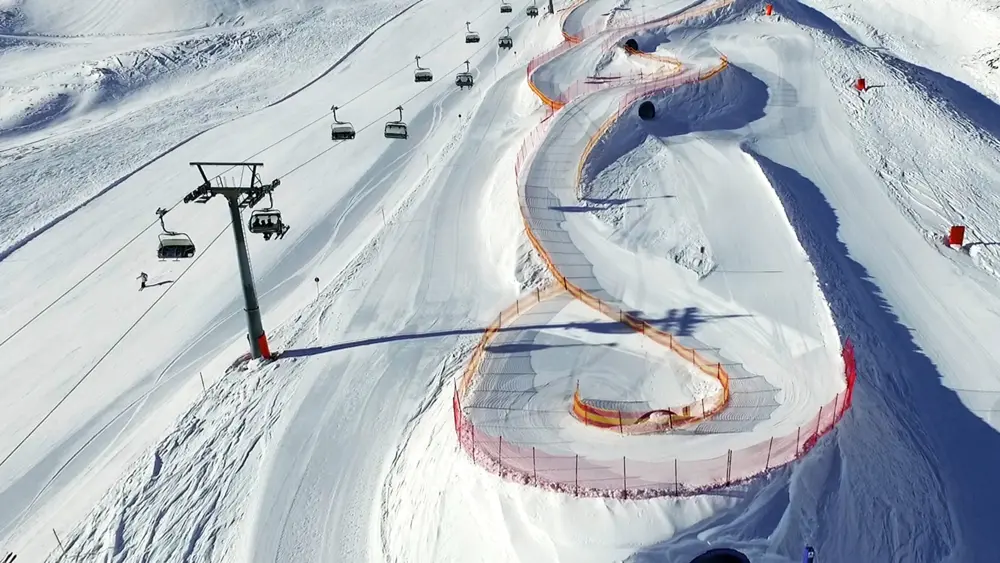 Die Funslope Hintertux befindet sich auf der Sommerbergalm auf 2.100 Metern: Hier warten eine zweispurige Wellenbahn, rasante Steilkurven und eine Riesenschnecke auf abenteuerlustige Skifahrer. Die Funslope erreicht man über den 4er-Sessellift Tuxerjoch.