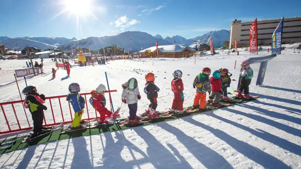 Kindern bietet Alpe d'Huez einen "Schneegarten", in dem die Kleinen ab zwei Jahren in vollkommener Sicherheit auf einem abgegrenzten Gelände mit Skiliften, Schlittenbahn und Spielraum das Skifahren erlernen. Kinder ab sieben Jahren werden von der Skischule betreut und haben die Möglichkeit, im Kindergarten zu Mittag zu essen.