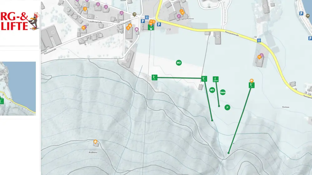 Blick auf die Planberg- und Wiesenlifte von oben