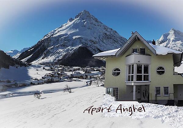 Blick auf das Hotel Toni im Paznauntal im Winter